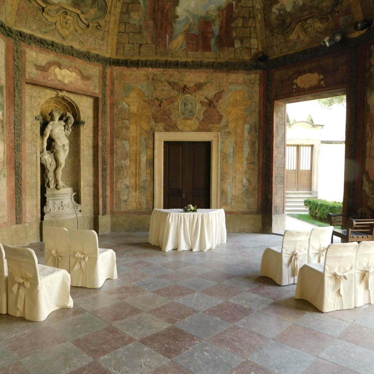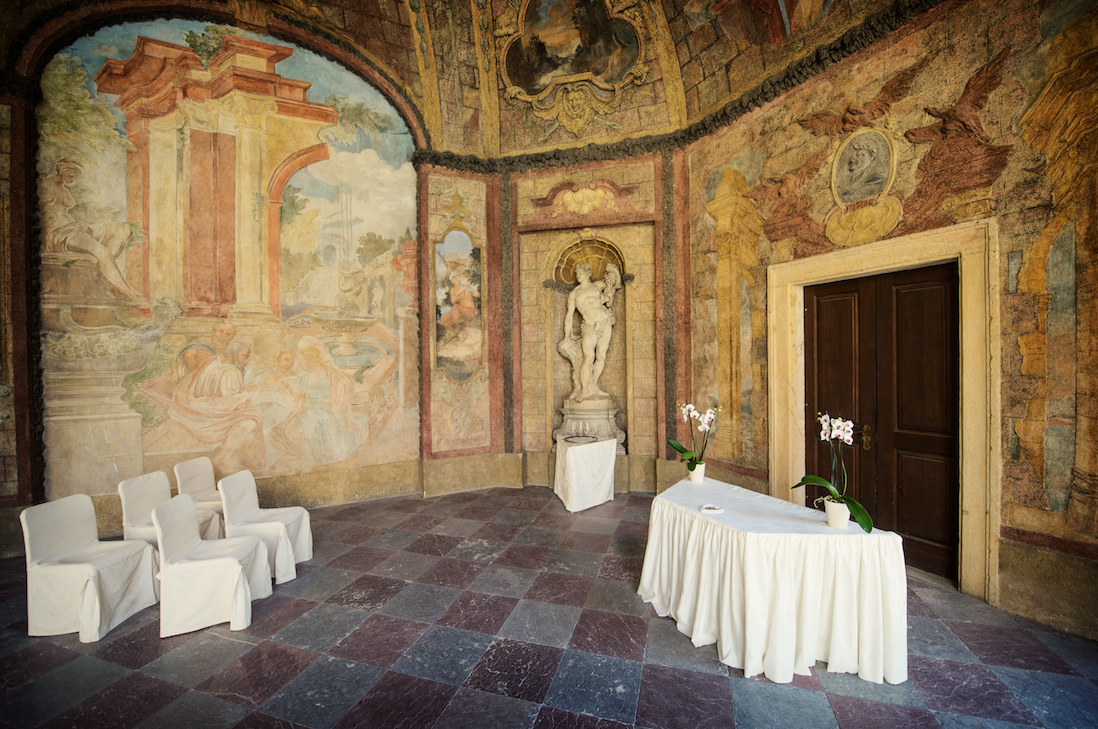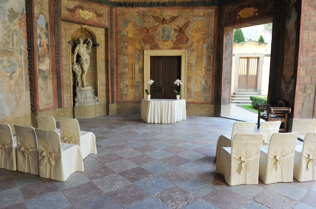 Obřady se konají v romantické sallatereně, která je pokryta a chráněna před deštěm. Obřady také mohou být uspořádány u 1. nebo 2. terasy nebo u fontány.